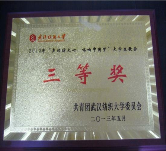 7、我院学生荣获“声动纺大心,唱响中国梦”大学生歌会三等奖。