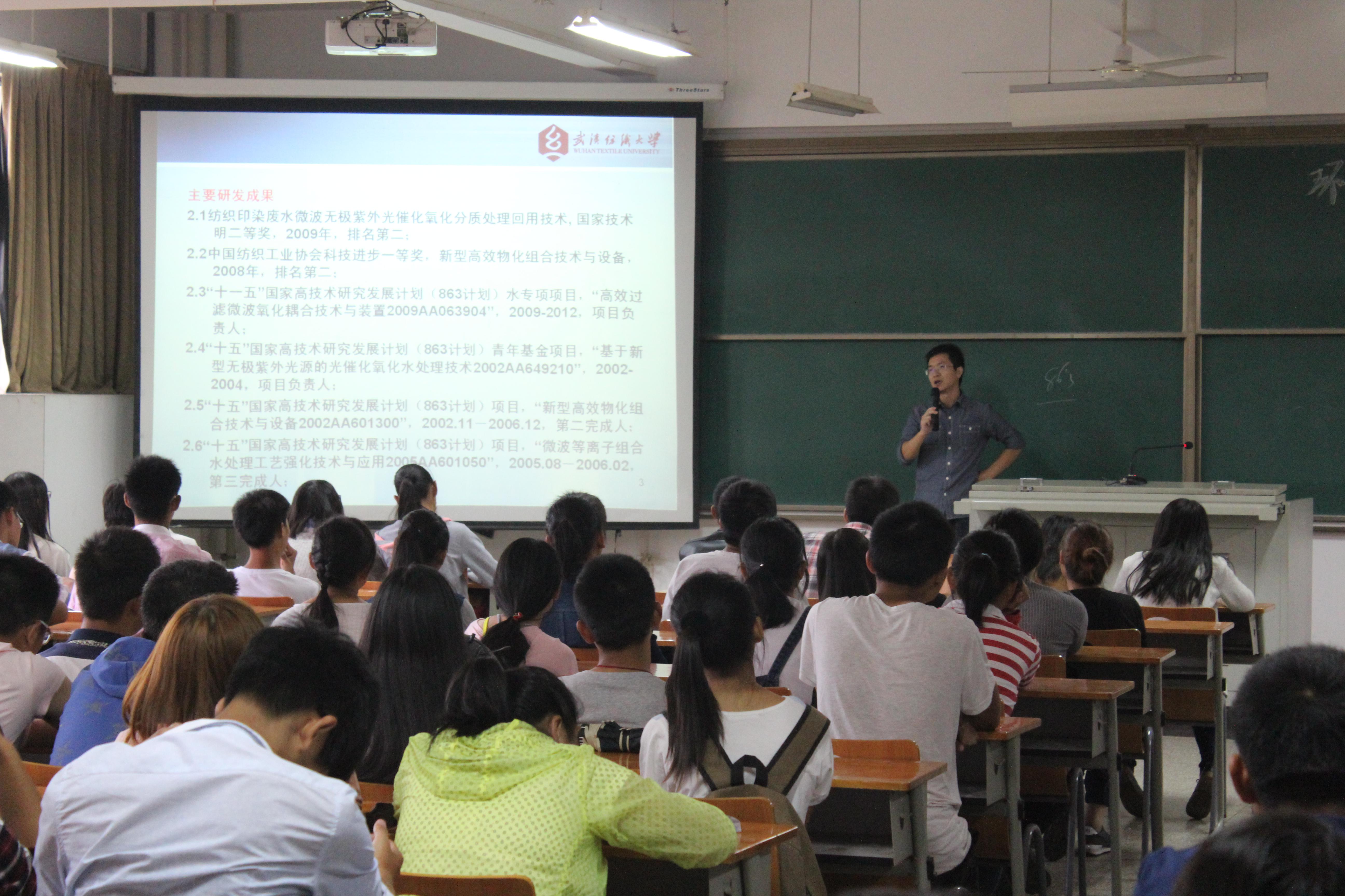 “你了解环境专业吗?”“你知道环境科学与工程的就业前景吗?”在环境专业教育的讲座上,夏东升院长介绍了环境专业的设置情况、专业分类、就业情况等,鼓励新生树立远大目标,制定学习计划,规划好人生道路。潘飞、曹刚老师分别进行了大气污染处理、印染污水处理主题讲座。环境11502班任运东同学说“经过专业老师的耐心讲解,我对专业有了更清楚的认识,也明确了未来的发展方向。”