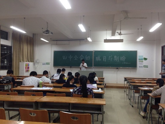 为迎接十月二十日党的十八届四中全会的召开,环境学院于10月19日晚展开“四中全会的瞩目与期盼”主题班会。学院老师们与同学们热烈讨论十八届四中全会召开的重要意义,交流各自对依法治国的看法。