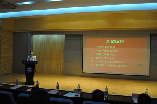 首先由张莎莎书记致辞,她代表全院教职员工向受表彰的先进集体和个人表示热烈祝贺。她指出,在过去一年学院在学校的关心指导下取得了丰硕的成果,涌现出一大批德才兼备的优秀学子,为把环境学院打造成为全校有特色、有影响的学院奠定了坚实基础。她强调,社会需要方方面面的人才,能在每个阶段立足把自己的学习、工作干好,能为社会做出应有贡献的人就是一位优秀的人才。她殷切希望环院学子能见贤思齐,以此次表彰大会为契机,树立远大志向,刻苦奋斗,不负众望。