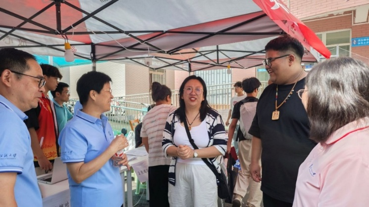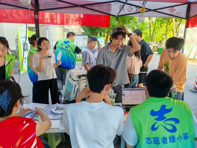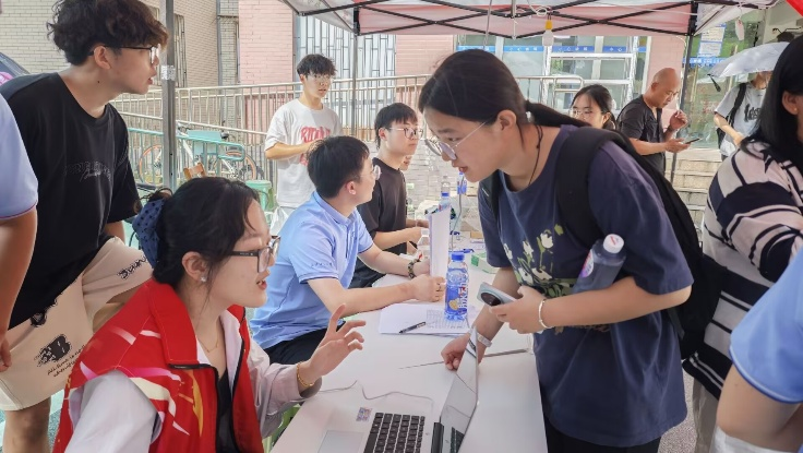志愿身影“暖心”,风雨亦坚守。志愿者们全天候在岗,答疑、引路,让新生与家长倍感亲切。迎新两日,天气变幻:首日狂风暴雨,次日烈日高温,可无论是身披雨衣的坚守,还是汗湿衣衫的忙碌,他们始终认真帮每一位新生完成登记。党员先锋队也活跃在校园里,热情接过新生手中的行李,让“志愿红”成为迎新季最亮眼的色。