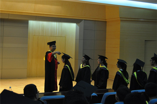 仪式的最后,由李进平教授给毕业生们拨穗正冠,李教授亲切地给每一位毕业生将帽沿的流苏从右边拨到左边,代表稻穗或麦穗成熟,象征毕业生已学有所成,可以展翅高飞 。