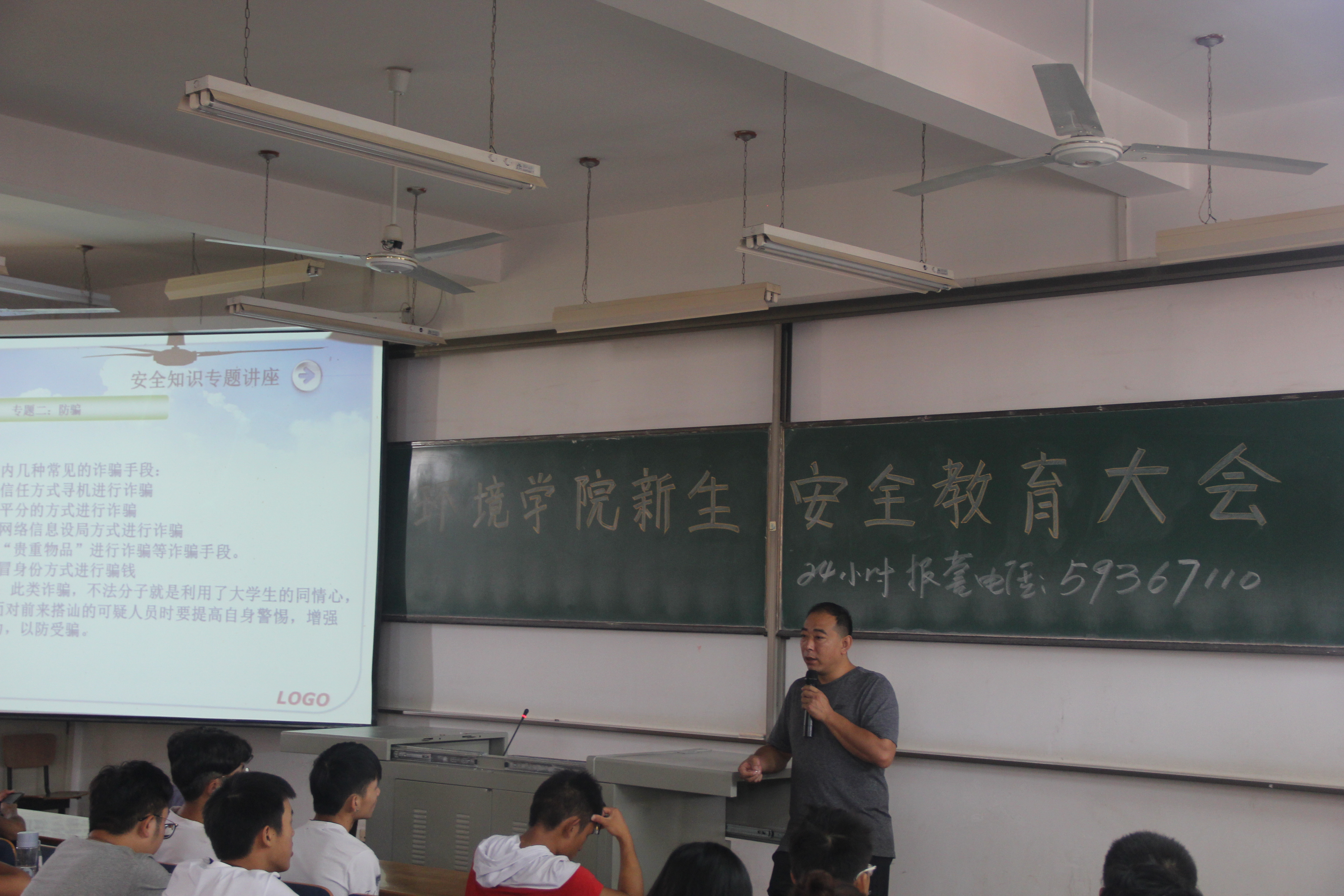 9月30号上午8点和10点,我院分别在三栋教学楼416与T101教室举行了新生安全教育大会,由校保卫处尚天飞老师和夏向阳老师主讲。