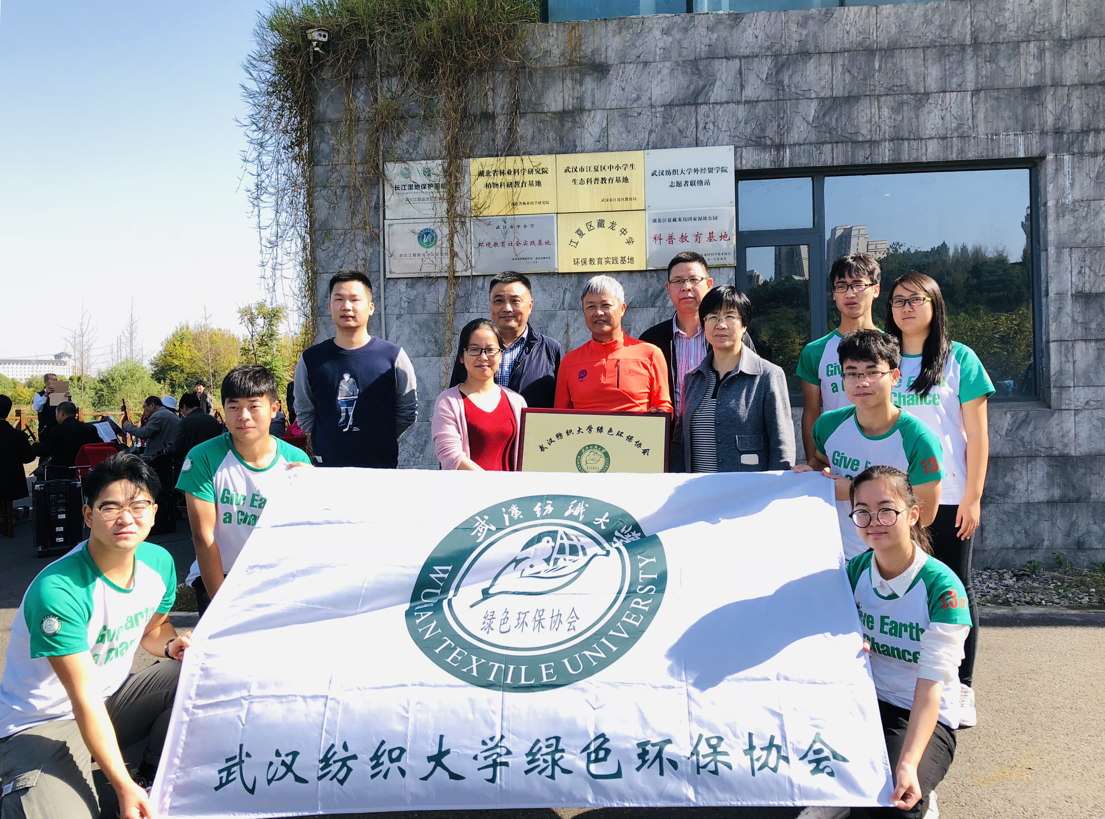 10月26日,绿色环保协会与藏龙岛国家湿地公园共建社会实践基地仪式在湿地公园举行,公园管理中心书记刘家武、主任邱国富,环境学院书记谢晓萍、副书记刘园美、协会指导老师姚瑶及志愿者代表参加了仪式。