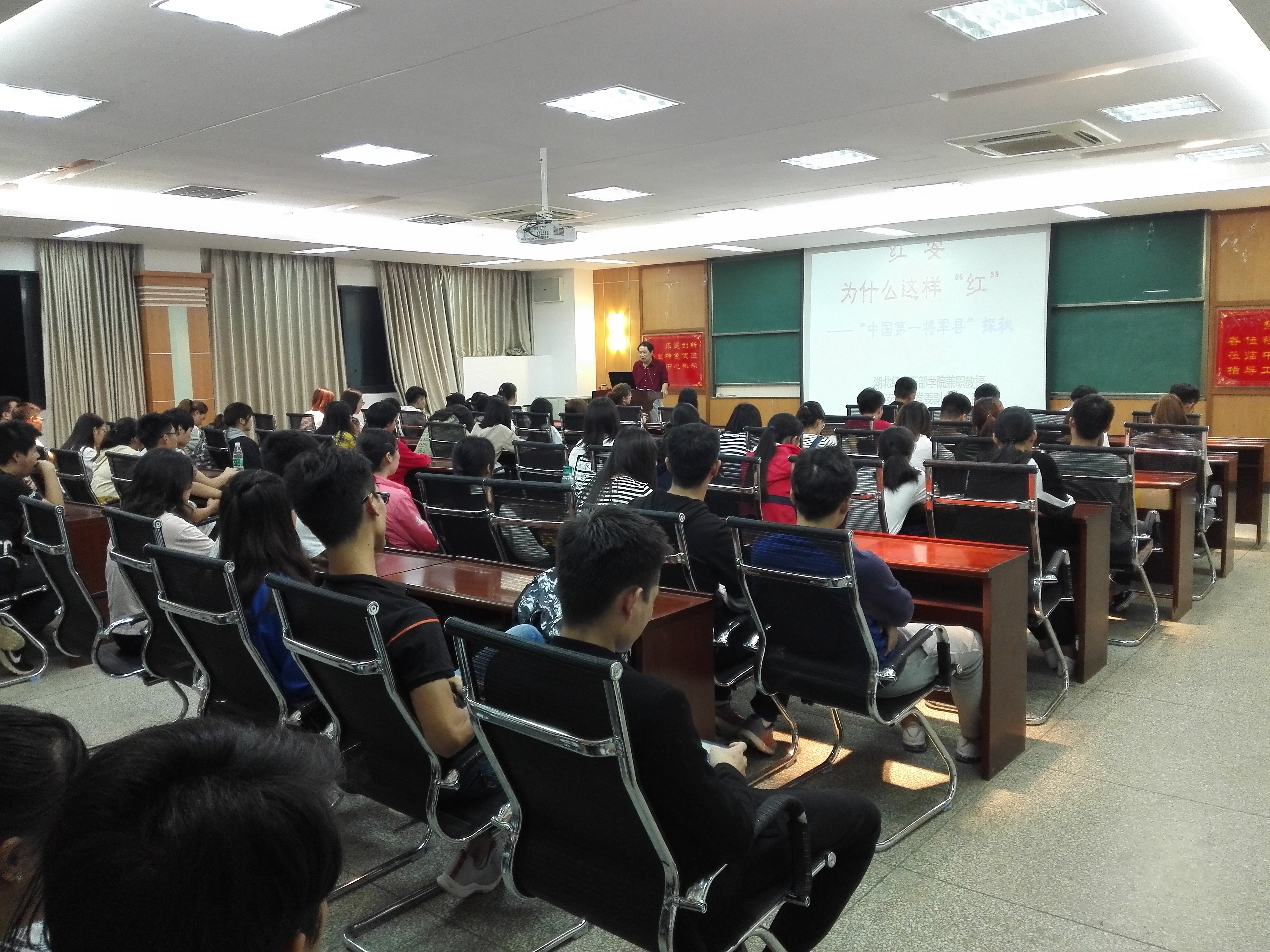 2018年9月27日晚上,环境学院3楼会议室座无虚席,红安一中李述河副书记为同学们带来了“红安为什么这样红”——中国第一将军县探秘的成长导航讲座。