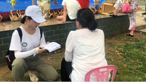 (队员对向阳村居民宣传“河湖长制”并进行问卷调查)