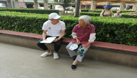 (队员给北洋桥鑫居民普及“河湖长制”知识并作问卷调查)