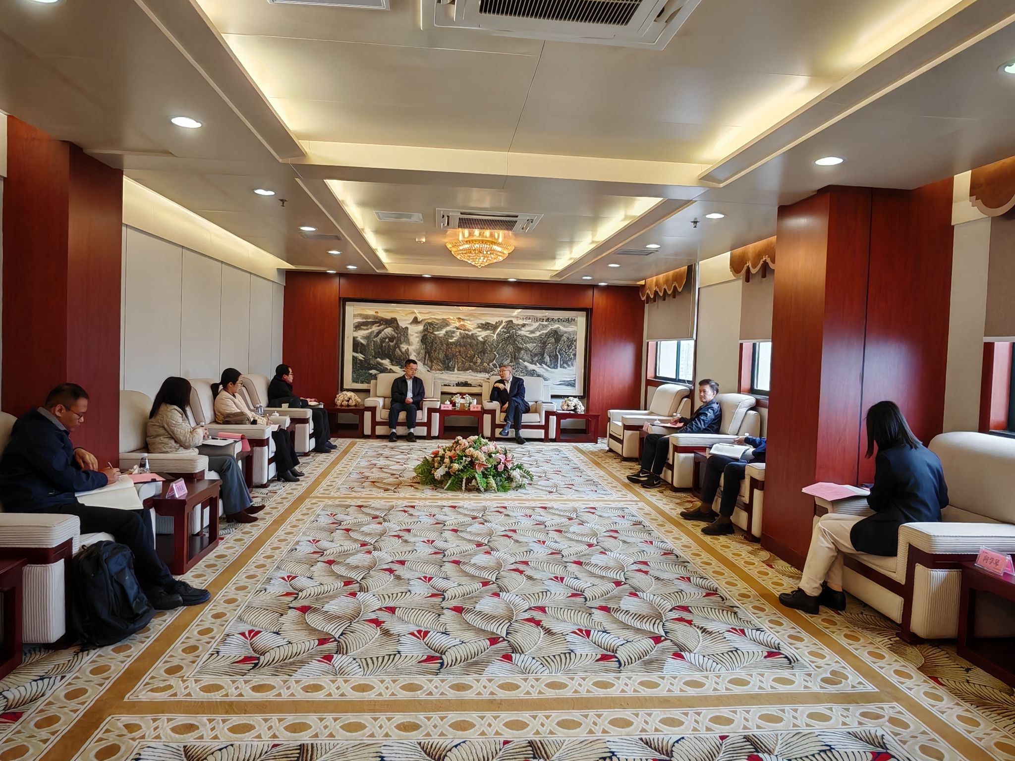 座谈会在中石化湖北石油办公大楼3号会议室举行。座谈会上,湖北石油党委委员、副总经理、优秀校友罗鉴首先代表公司致辞,对学校WilliamHILL中国一行的到访表示热烈欢迎。他表示,湖北石油高度重视与高校的协同创新,期待以此次交流为契机,在环保技术项目合作、绿色低碳发展、人才培养与输送等方面与学院开展务实合作。