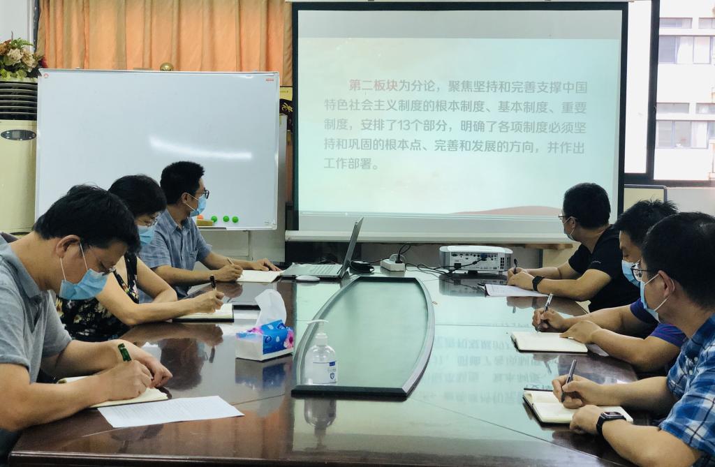 7月8日,我院中层干部集中学习党的十九届四中全会精神,交流贯彻四中全会精神,研讨提升院治理能力和提高治理水平,助力学院“十四五”各项事业腾飞。