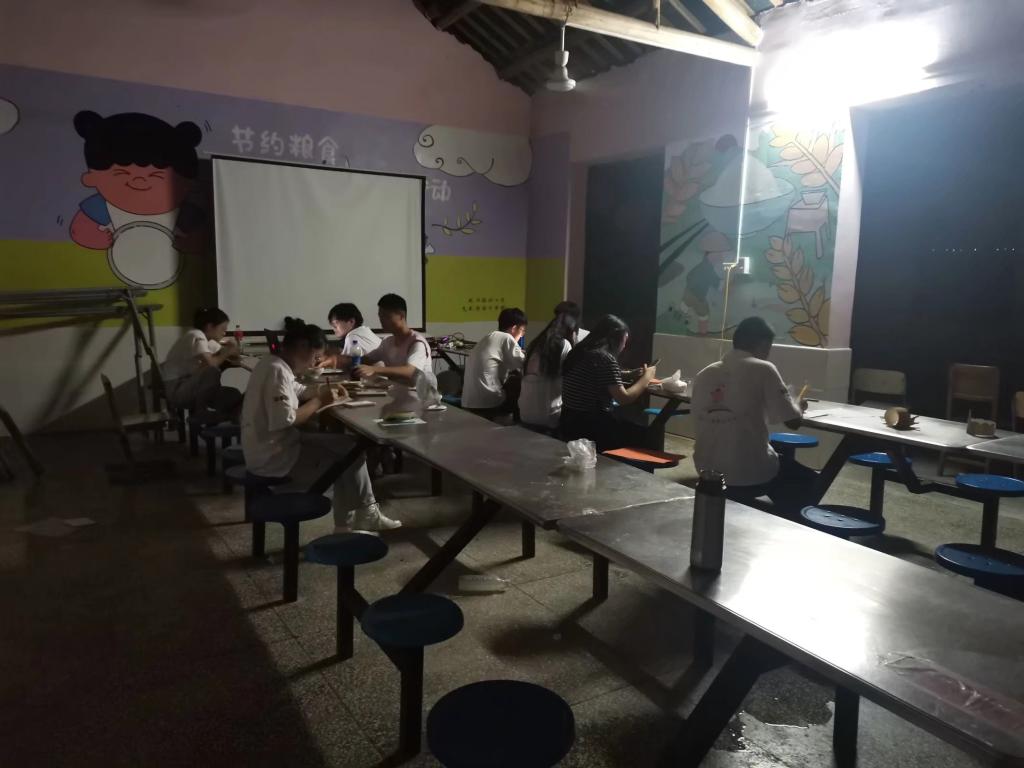 不忍说再见,但终须一别。我很荣幸陪伴他们这一段时光。我们17位志愿者经历无数次团建、无数次开会,遇到过很多困难,但我们团结一心将困难一个个克服,为共同目标而努力着。在王要小学,我们同甘共苦,雪碧成了奢侈品,晚上在操场上,一群人围着一桶泡面,品尝着这“世界上最美妙的食物”。没有水果,一口西红柿甜美爽口;没有肉,一根香肠是最后的倔强。我们省吃俭用,仔细盘算着什么菜最便宜,希望将钱省下用在孩子们身上,我们不是一家人,胜似一家人。