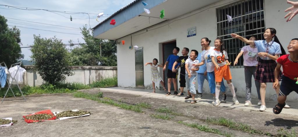 窗外晨光明媚,与孩子们的笑容交相辉映。课后,孩子们在操场放飞亲手折的纸飞机,比比谁的飞机飞的更高更远,五彩斑斓的纸飞机在空中划出一道道彩虹,这应该是他们最快乐的时候。