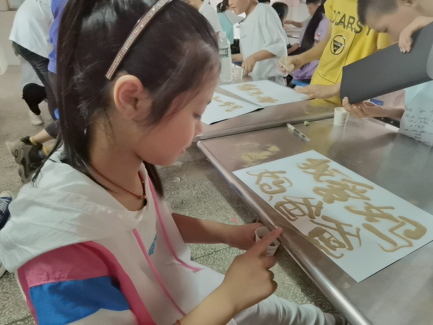 窗外大雨如注,窗内氛围暖暖,我们和孩子们一起进行了沙画、刮画的创作。有个叫张倩的孩子突发奇想,在沙子上写下“小帆哥哥最帅”,拉着我去欣赏,我很感动,向他竖起了大拇指。还有个孩子,爸妈长期在外打工,由爷爷奶奶照顾他的日常,写下了“我爱妈妈爸爸”,我心头一颤。