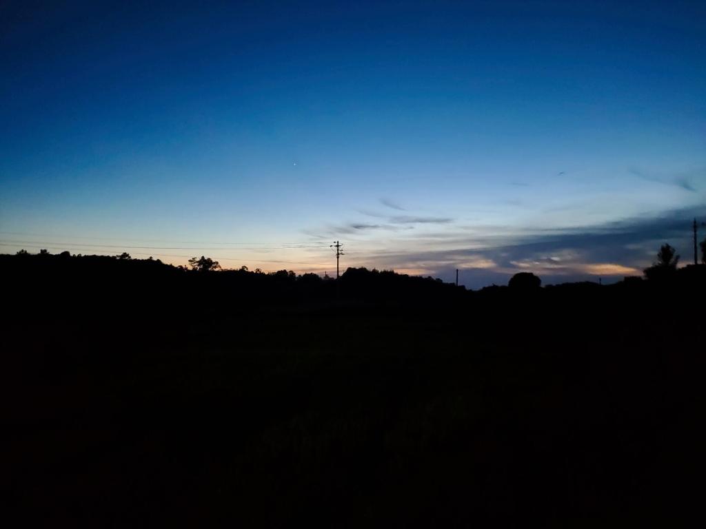 准备妥当后,我静静地坐在操场上,这是一天中最轻松的时刻,吹着微微凉风,仰望星空,月朗星稀,蛙声一片。