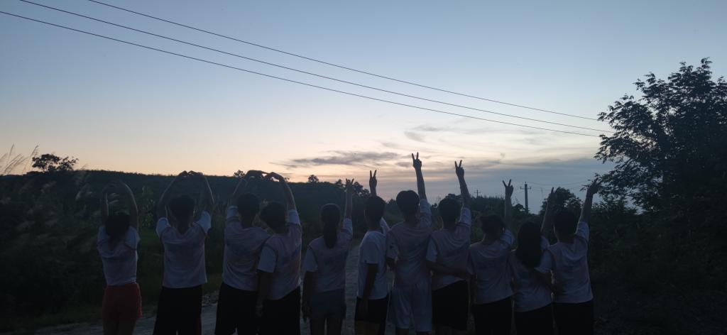 一群孩子在操场上晨练,在阳光的照耀下显得更加活泼。不知不觉,田野营也接近尾声。我们一起为结营舞蹈准备着,孩子们认真跳舞的样子,是那样的朝气蓬勃,我很享受和他们在一起的时光,忘记了所有烦心事,但陪伴他们的时间越来越少,我想做的就是珍惜当下的每一分钟。