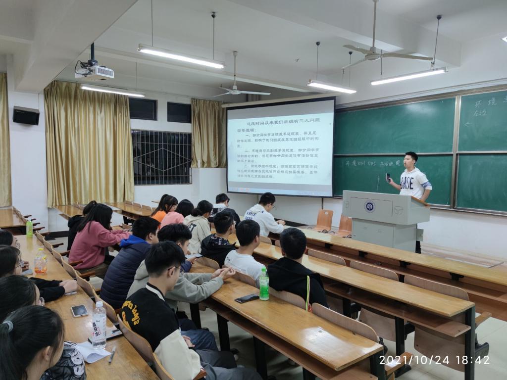 围绕课堂阵地,为进一步帮助学生明确学习目标,形成良好学习风气。广泛动员实现全覆盖,年级举办朋辈领航经验交流会,邀请优秀学子传授方法,精准帮扶。10月31日晚,环境学院于崇礼楼310报告厅开展了主题为“我的大学我做主”朋辈领航讲座,给排水1802班彭佳、王碧蓉两位同学结合自己的大学四年学习规划,从大一适应期、大二稳定期、大三选择期、大四冲刺期四个阶段,向新生介绍了不同时期应该如何结合自身兴趣特长进行合理规划安排。