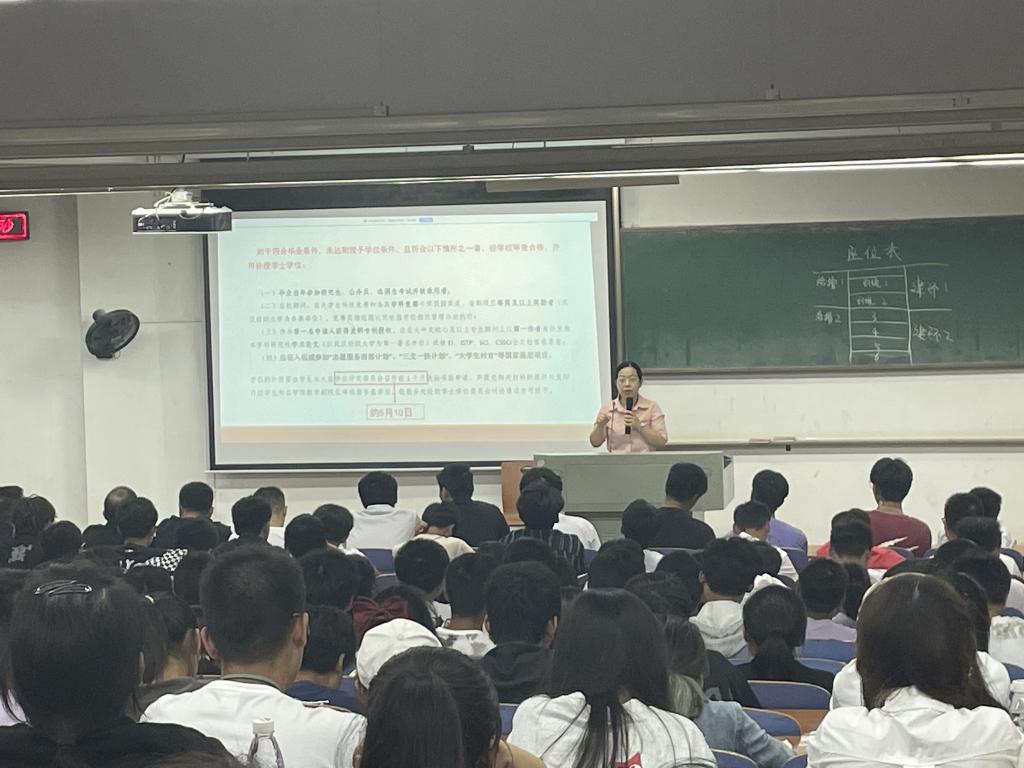 蔡亚君从专业课程设置、学分构成、考试制度、降级制度、毕业学分绩点要求、转专业考核等做了详细说明,她叮嘱同学们要仔细学习学生手册中关于学籍管理、学士学位授予、学分制实施细则等相关内容,做好学习规划。