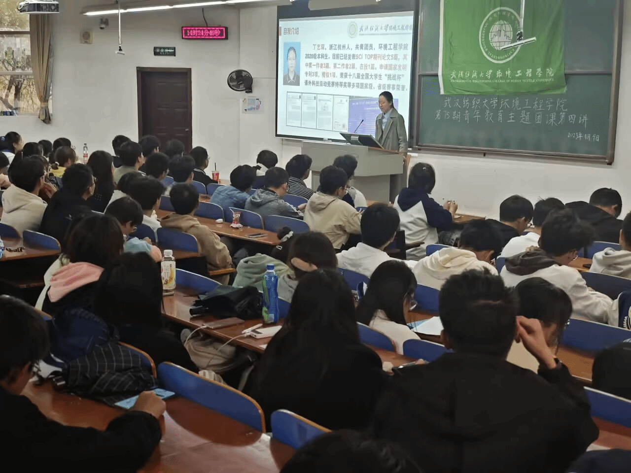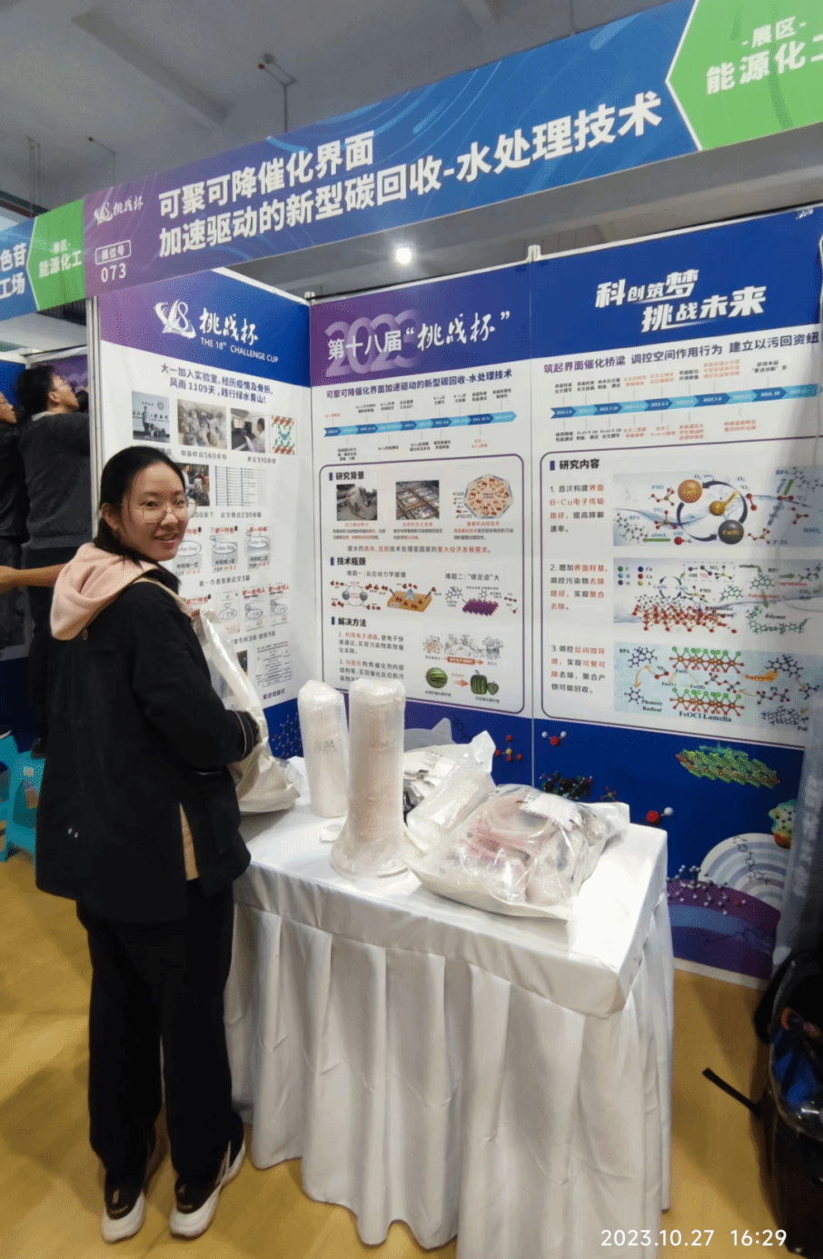 丁艺琛积极开展科创主题交流活动,本科生论坛等活动十余次,她把自己成长经历进行梳理,为更多的青年学子提供参考,她认为挫折为成长赋能,坚持不懈才有所获,大二暑假时骨折,无法到实验室进行实验对她来说简直晴天霹雳。但也在那个时候,她突然受骨头断裂到愈合的启发,发现了污染物去除的新机制,反而由此找到了研究的新角度。在压力面前保持冷静和积极乐观的心态,才能一路披荆斩棘;规划为发展助力,积极谋划赢得主动。一次偶然的机会,她了解到西湖大学面向本科生开放攻读博士学位的机会,仔细研究了招生简章要求,主动联系老师报名参加夏令营和暑期实习活动。并在夏令营过程中,积极向指导老师、实验组师兄师姐请教学习,获得夏令营优秀营员资格。只有提前规划、认真准备、积极争取,才能实现自己的目标。在她的带动鼓励下,学院23级学生70余人加入了实验室团队,越来越多的青年学子怀揣着科技兴国的梦想,逐梦前行。