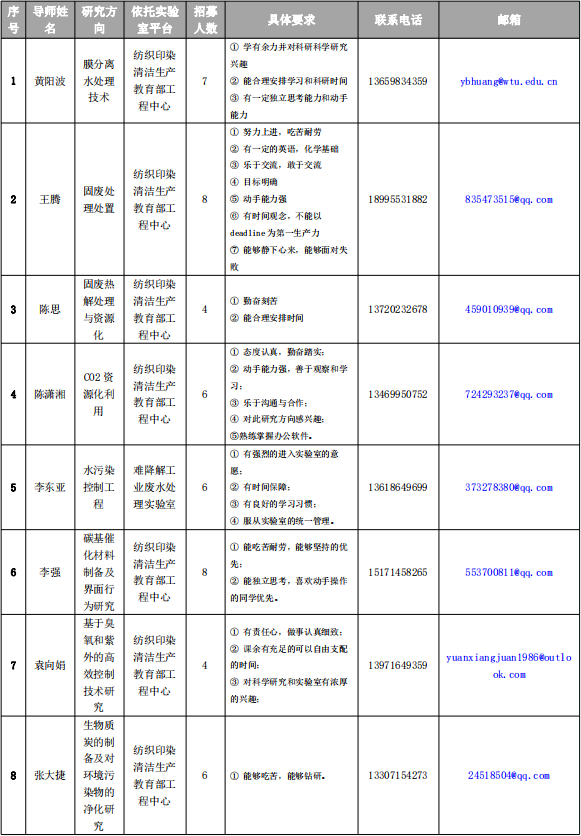 学院经过前期招募意愿征集,12名老师共需招募75名学生助手(详情见下表),欢迎有致力于从事科学研究的同学,根据表中要求、联系方式咨询对应老师(排名不分先后),由老师根据报名情况择优选拨。