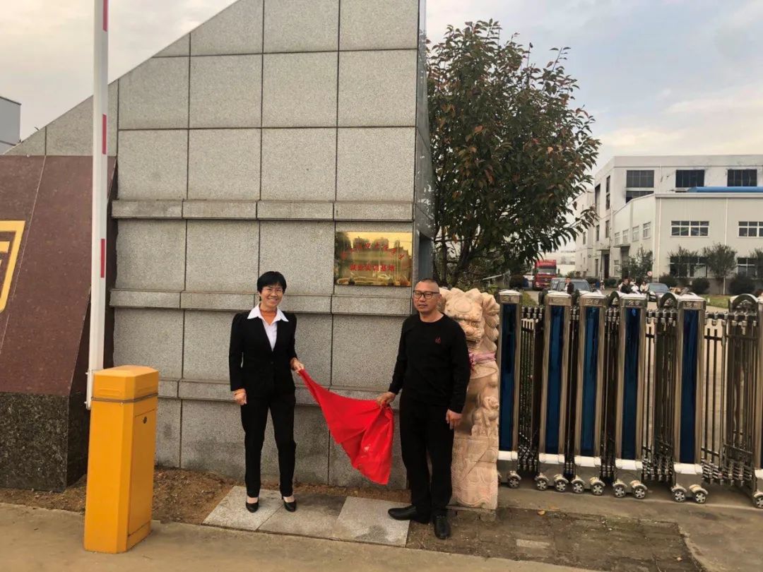 与中碧环保科技公司总经理张斌(图右)为大学生就业实训基地揭牌
