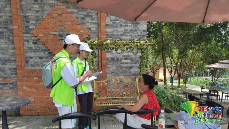 图为队员对游客进行访谈。中国青年网通讯员 卫嘉华 摄