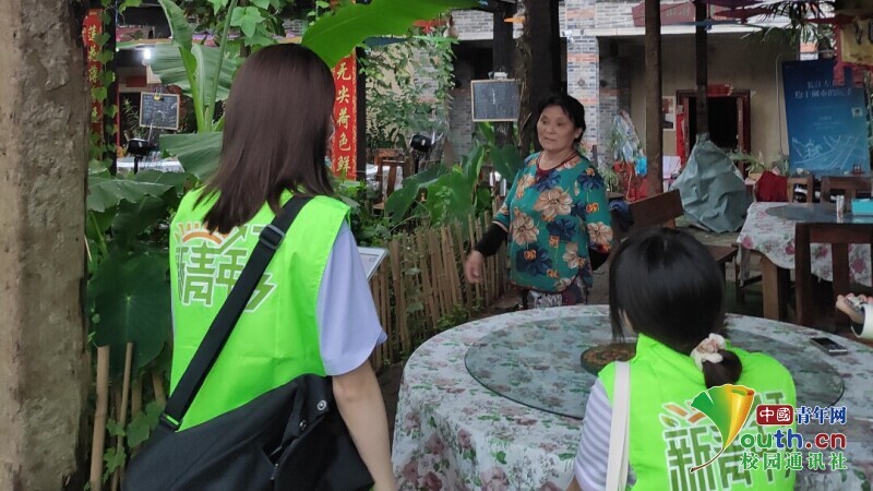 图为队员对经营户进行访谈。中国青年网通讯员 任寒梅 摄