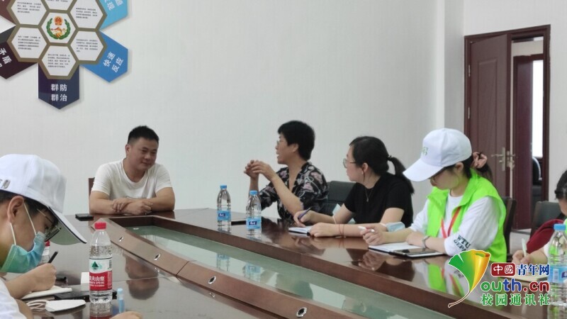 图为实践队员在指导老师带领下同王万里主任开会时的照片。中国青年网通讯员 江晶晶提供