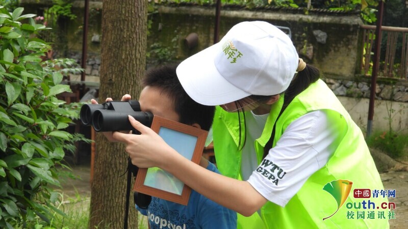 图为实践队员带领游客观鸟时的照片。中国青年网通讯员 江晶晶提供