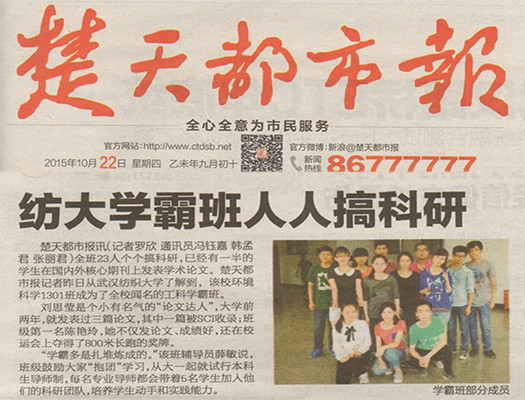 楚天都市报讯(记者罗欣 通讯员冯钰嘉 韩孟君 张丽君)全班23人个个搞科研,已经有一半的学生在国内外核心期刊上发表学术论文。楚天都市报记者昨日从williamhill了解到,该校环境科学1301班成为了全校闻名的工科学霸班。