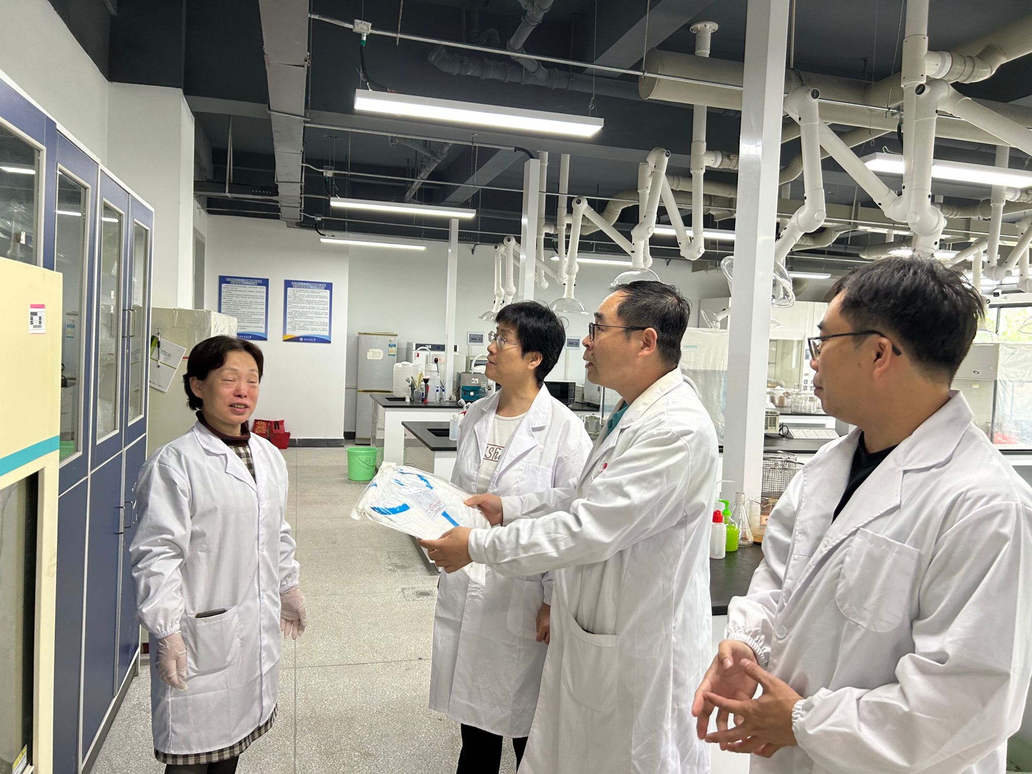 随后,检查团队着重检查了学生防护用具的使用情况。谢书记指出,正确使用防护用具是保障学生安全的重要环节,实验室必须确保每位学生都能够熟练掌握防护用具的使用方法。赵丽荣老师则对学生们进行了现场指导,确保他们能够正确佩戴防护眼镜、手套等装备。在检查过程中,学院领导还特别关注了实验室安全教育的落实情况。谢晓萍书记询问了实验室安全教育的开展情况,并要求实验室负责人提供相关的教育记录和反馈。她强调,安全教育不仅要定期进行,而且要确保教育内容的实用性和针对性。