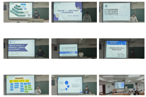 参赛选手依次上台从项目背景、已有基础、商业模式、团队成员等多方面介绍自己的项目。李皓辰介绍了生物质碳复合材料对水环境中难降解污染物的净化,崔勃研介绍了“以废治废“—苎麻纤维生物炭对染料废水的处理,漆秀介绍了废弃钙基材料改性及其协同流化床异相除磷与磷回收,杜涵君介绍了复合材料强化反硝化脱氮除磷的新技术,胡龙翔介绍了新能源汽车智能空调净化系统,李路森介绍了石墨烯基复合材料在废水处理过程中的应用,曾志康介绍了“污水净化器”—一种具有解毒降碳功能的棉布基纳米Fe3O4-微生物复合材料,可冲介绍了“污水净化器”—一种用于抗生素废水净化的活性碳纤维,杨馨婷介绍了测温知烟“重”—一种隧道火灾烟气质量流率测量技术,朱晓兰介绍了纳米反应器—工业废水新型高效处理装置推广项目,张珺介绍了绿芽自然营地课堂项目。