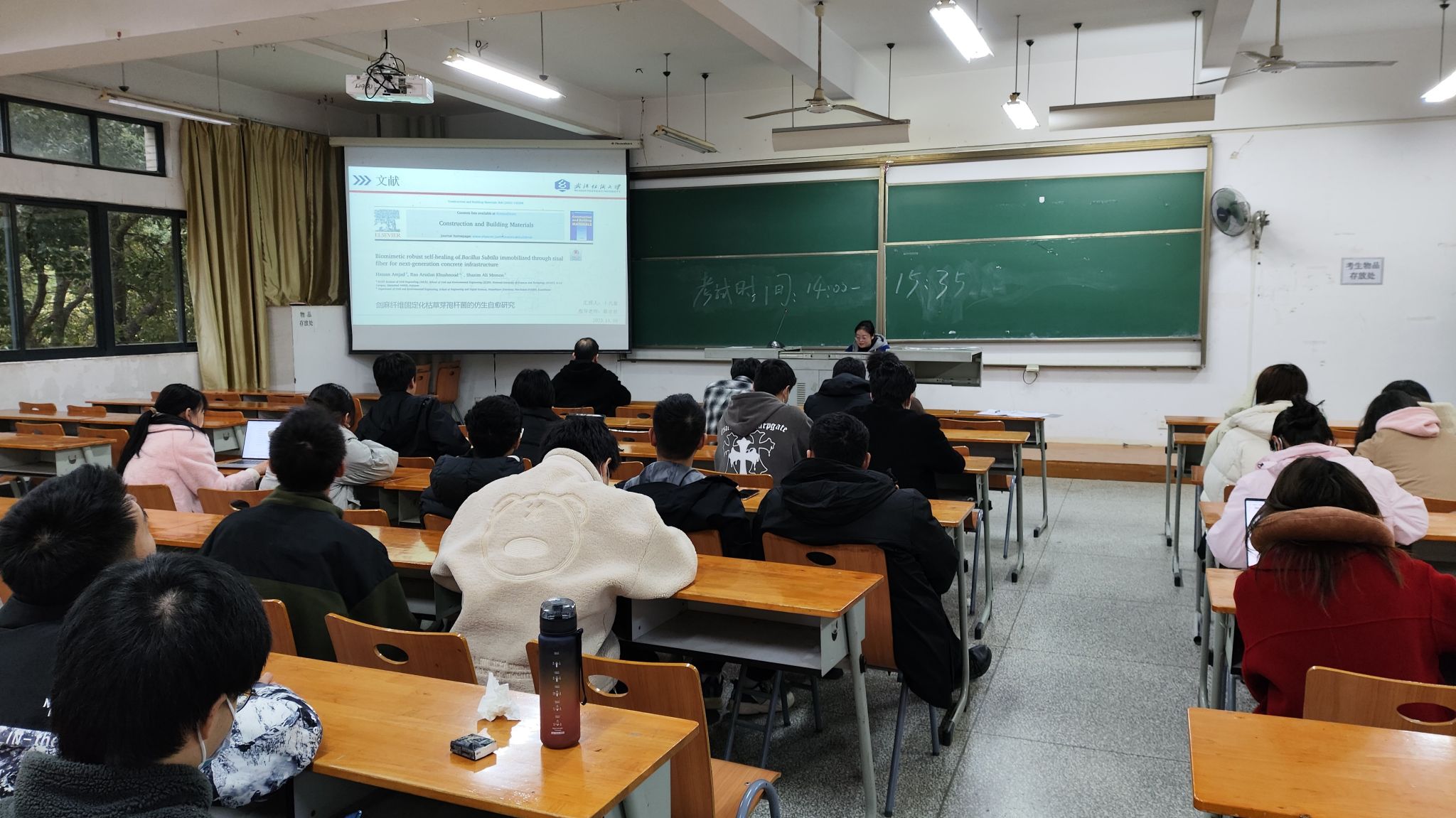 卜凡童同学结合课题组前期研究,概述了剑麻纤维固定化枯草芽孢杆菌对连续两次损伤循环下生物可愈合混凝土的稳定性;通过量化裂缝愈合的平均宽度和愈合阶段的恢复强度来评估自愈效果。结果表明,剑麻纤维能够有效保存芽孢杆菌的孢子,并增强其生物代谢潜力,沉淀方解石,用于混凝土裂缝的密封。剑麻纤维固定化枯草芽孢杆菌被证明是一种改善混凝土力学性能并促进混凝土在重复损伤中自我修复的可行方法。
