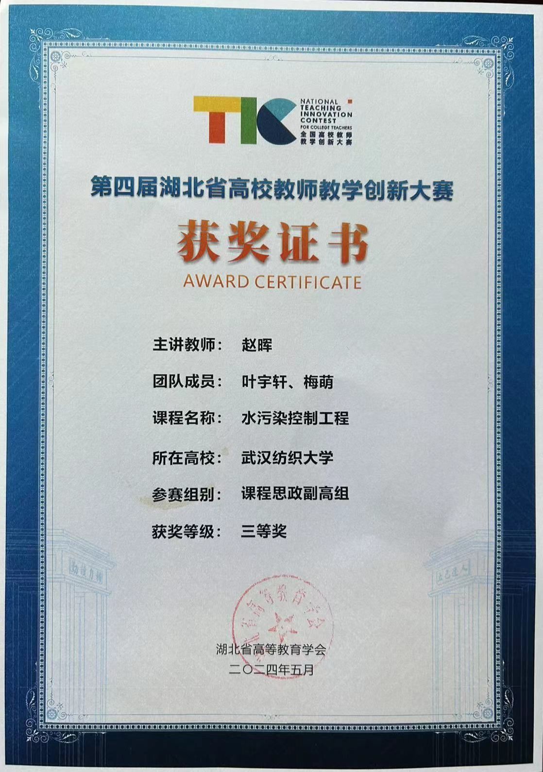 日前,第四届湖北省高校教师教学创新大赛产教融合赛道比赛在华中农业大学顺利落下帷幕,标志着第四届湖北省高校教师教学创新大赛比赛项目全部结束,我院赵晖老师《水污染控制工程》课程团队获课程思政组副高组三等奖。