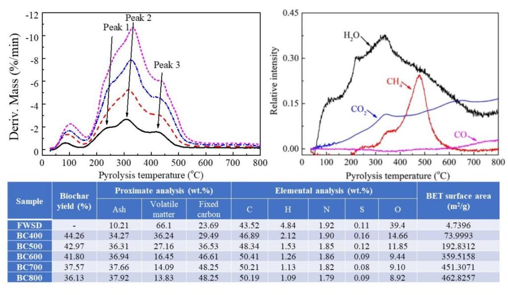 在领域TOP期刊Bioresource Technology (IF=9.642,T2)上发表了题为Preparation of biochar from food waste digestate: Pyrolysis behavior and product properties的论文,该论文第一作者为刘静欣博士,通讯作者为李进平教授,williamhill为唯一完成单位。该文章对餐厨垃圾沼渣的物化性质进行了充分详尽的研究,采用Starink非等温反应模型分析了热解过程动力学,TG-FTIR-MS检测表明H2O、CO2、CO、NO、NO2、烃类等是该沼渣热解过程中释放的主要物质,对所得生物炭材料的多维度的分析表征显示,该材料具有丰富的孔道结构和表面官能团,水溶性较低,材料特性受热解温度影响很大,此外,该材料继承了餐厨垃圾重金属含量低、Ca/N/P含量高的特点。本项研究提供了大量的基础数据,有助于提升餐厨垃圾厌氧发酵副产品再利用价值,促进沼气工程的推广与发展。