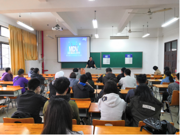 3月28日下午两点,第十七届MDV中央空调设计应用大赛宣讲会在崇礼楼108教室举行武汉美的暖通设备销售有限公司胡志涛经理到场讲解。