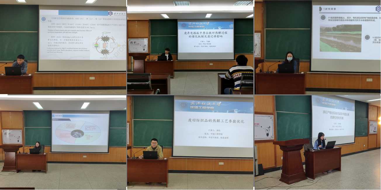 本次论坛由固废综合处置与协同利用技术研究创新团队的6名研究生钟梦琪、王瀚林、周伦、史晓澳、邓晓彤、徐志超主讲,由王腾老师主持。学院副院长李进平教授出席论坛并讲话,表示学院对研究生学术氛围构建的重视,对本次论坛提出明确要求和希望。学院中青年骨干教师和在校全体研究生参加了会议。