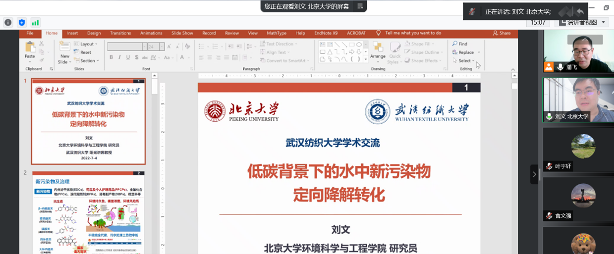 7月4日上午,学院在线上举办第172期阳光论坛。本次论坛邀请了北京大学刘文研究员作了题为“低碳背景下的水中新污染物定向降解转化”的报告。论坛由学院院长潘飞教授主持,学院教师和研究生参与了此次论坛。