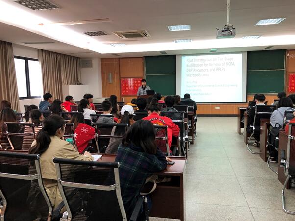 2019年3月21日下午2:00,复旦大学环境科学与工程系青年研究员付杰博士在阳光校区理工楼工程中心学术报告厅做了题为“Pilot Investigation on Two-Stage Biofiltration for Removal of NOM, DBP Precursors, and PPCPs Micropollutants”的学术讲座,环境工程学院全体教师和研究生参加了报告会。