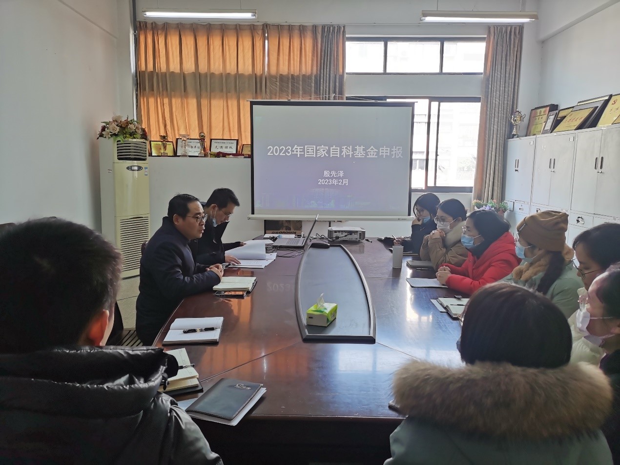 2023年2月15日下午,我院开展第五轮国家自然科学基金研讨会,邀请材料学院殷先泽教授进行基金申报指导。本次会议由院长潘飞教授主持,拟申报基金的老师全程参加。