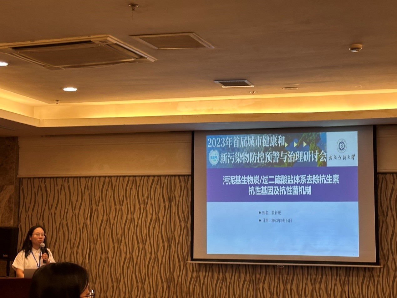9月24日,裴轩瑗博士在研讨会的分会场上做了题为《污泥基生物炭/过二硫酸盐体系去除抗生素抗性基因及抗性菌机制》的学术报告。分享了在新污染物治理新技术方面的最新研究成果,并介绍了高级氧化新技术在新污染物治理方向的应用前景,以有效应对当今城市所面临的新型污染挑战。