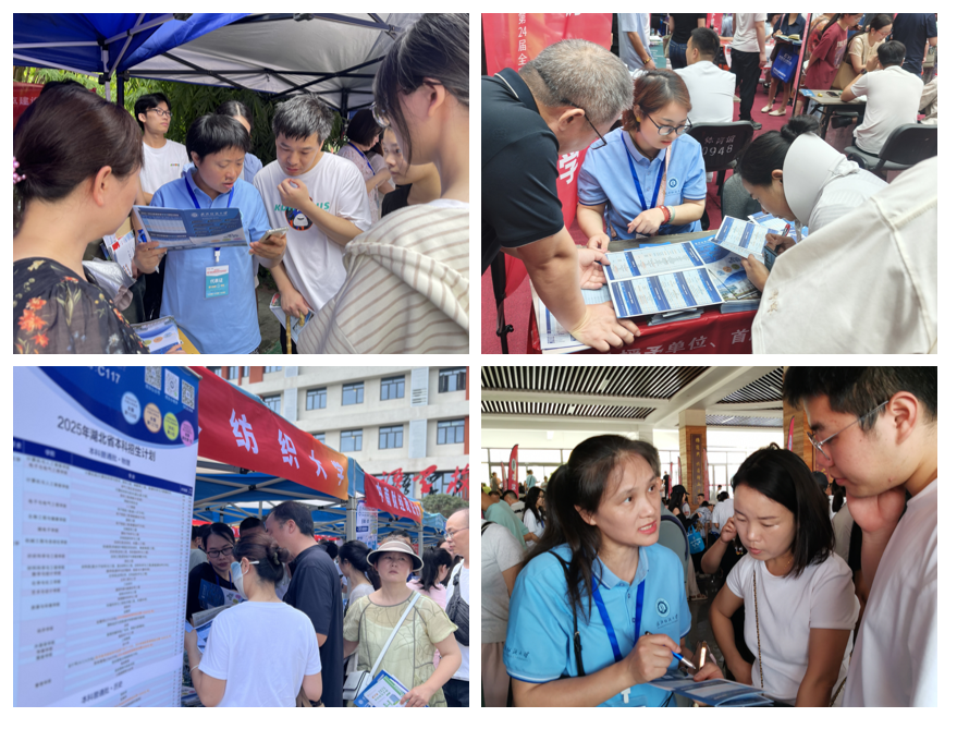 6月26日至28日,学院专任课老师施银桃、王腊姣、王文霞、陈思等代表学校参加了2025年湖北招生巡回咨询会,奔赴钟祥、宜昌、荆门、荆州、监利、松滋等地开展招生宣传,为考生及家长答疑解惑,增进考生对纺大的了解,挖掘潜在优质生源。