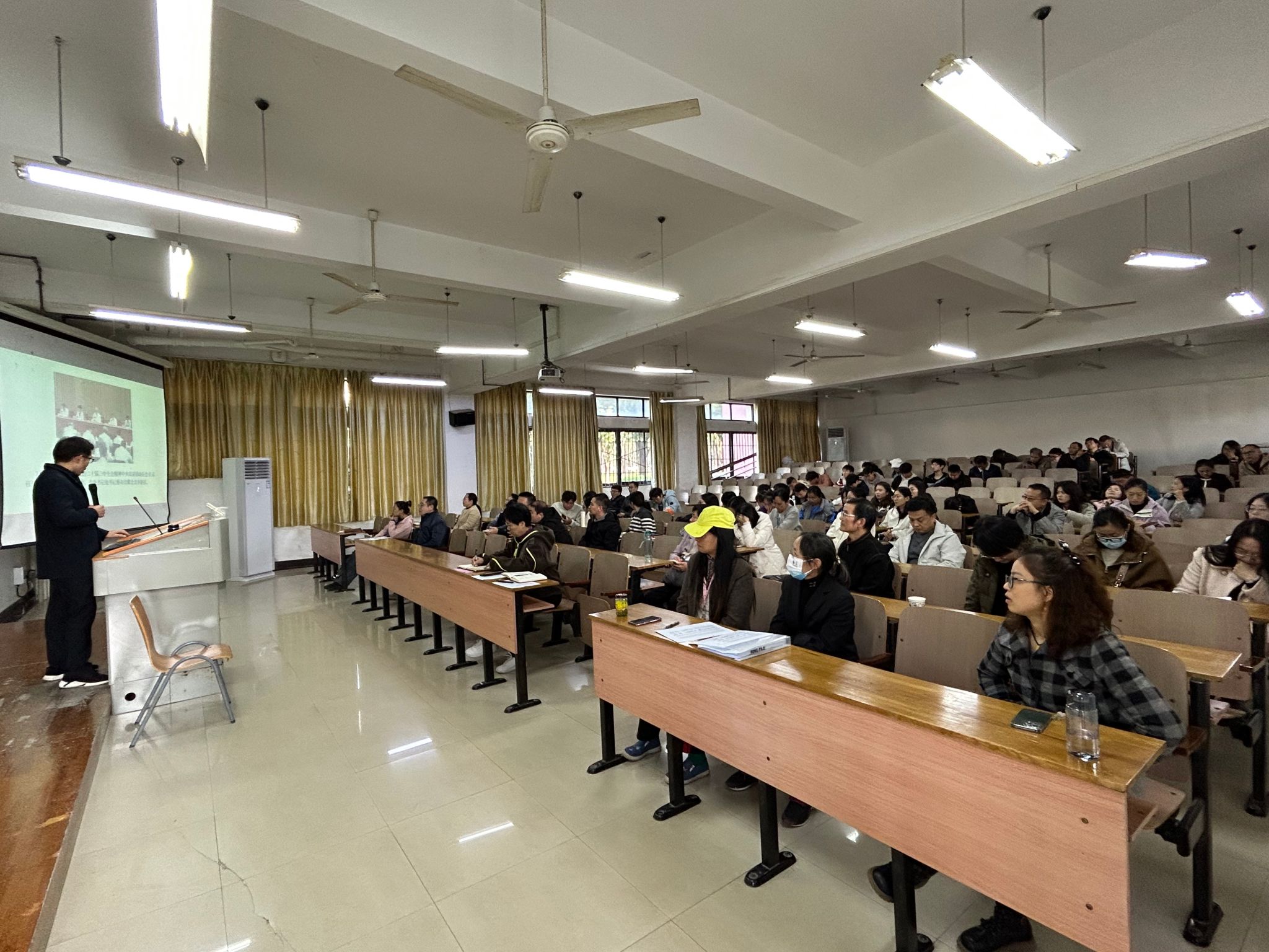 王海燕以《进一步全面深化改革、推进中国式现代化》为主题,从“深刻认识党的二十届三中全会的重大意义”“深入领会习近平总书记全会上的重要讲话精神”和“全面准确理解《决定》提出的进一步全面深化改革重大举措”三个方面,对全会精神进行了详细、深入的解读阐释。同时,结合学院实际,从教育、科技、人才角度,就坚持用改革精神推进学院工作与大家探讨。