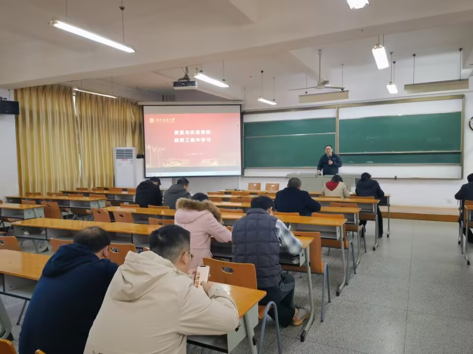 潘飞院长围绕党的二十届四中全会通过的《中共中央关于制定国民经济和社会发展第十五个五年规划的建议》精神进行导学,并强调要将学习宣传贯彻二十届四中全会精神作为重大政治任务,深刻领会核心要义,紧密结合学院实际,将学习贯彻与科学谋划学院十五五规划发展、推动学院重点工作紧密结合,切实把学习成果转化为高质量发展实效。