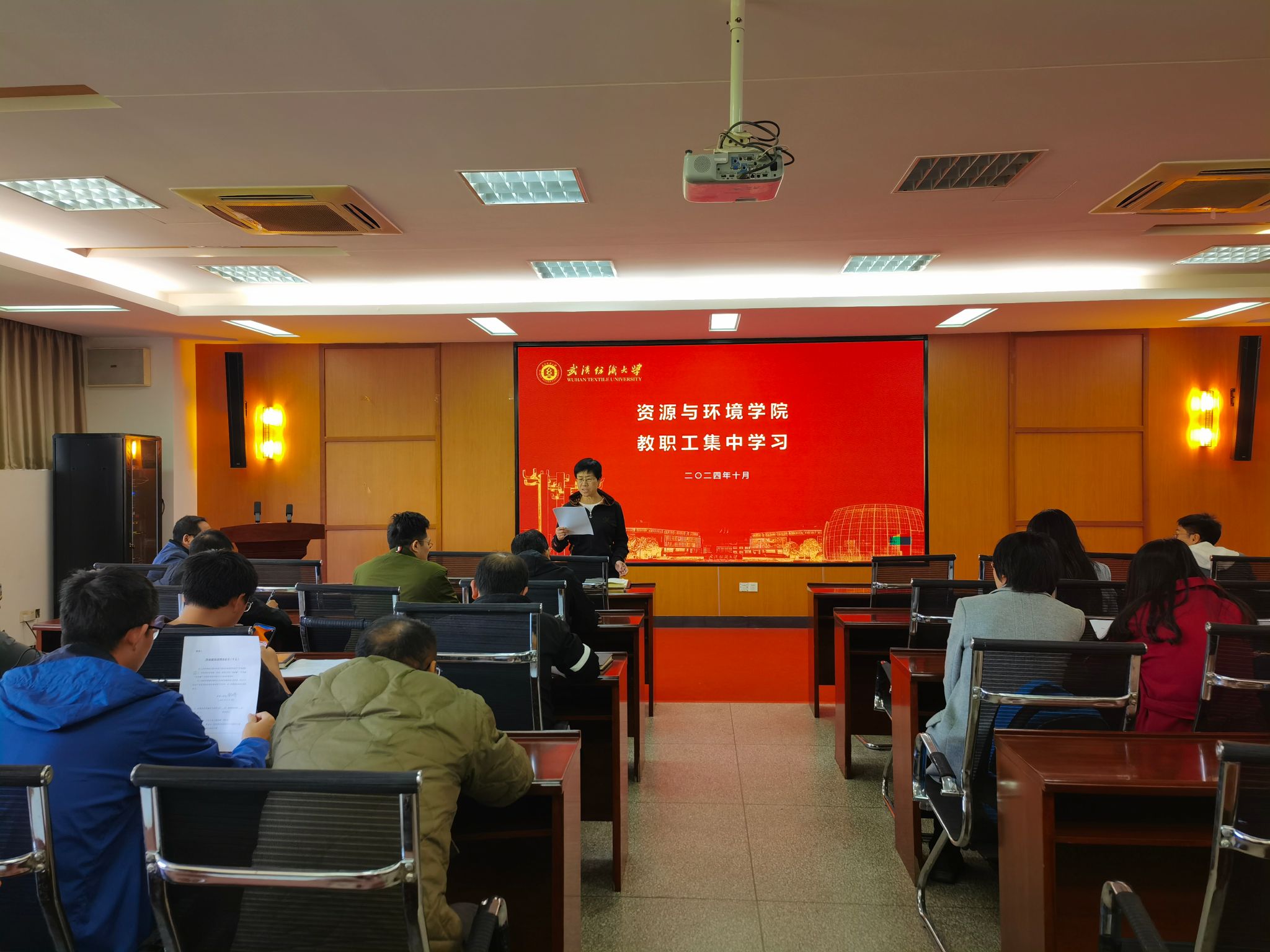 1024日,资环学院10月教职工政治理论学习例会在崇礼楼312召开,例会由学院党委书记谢晓萍主持,学院全体教职工参加。