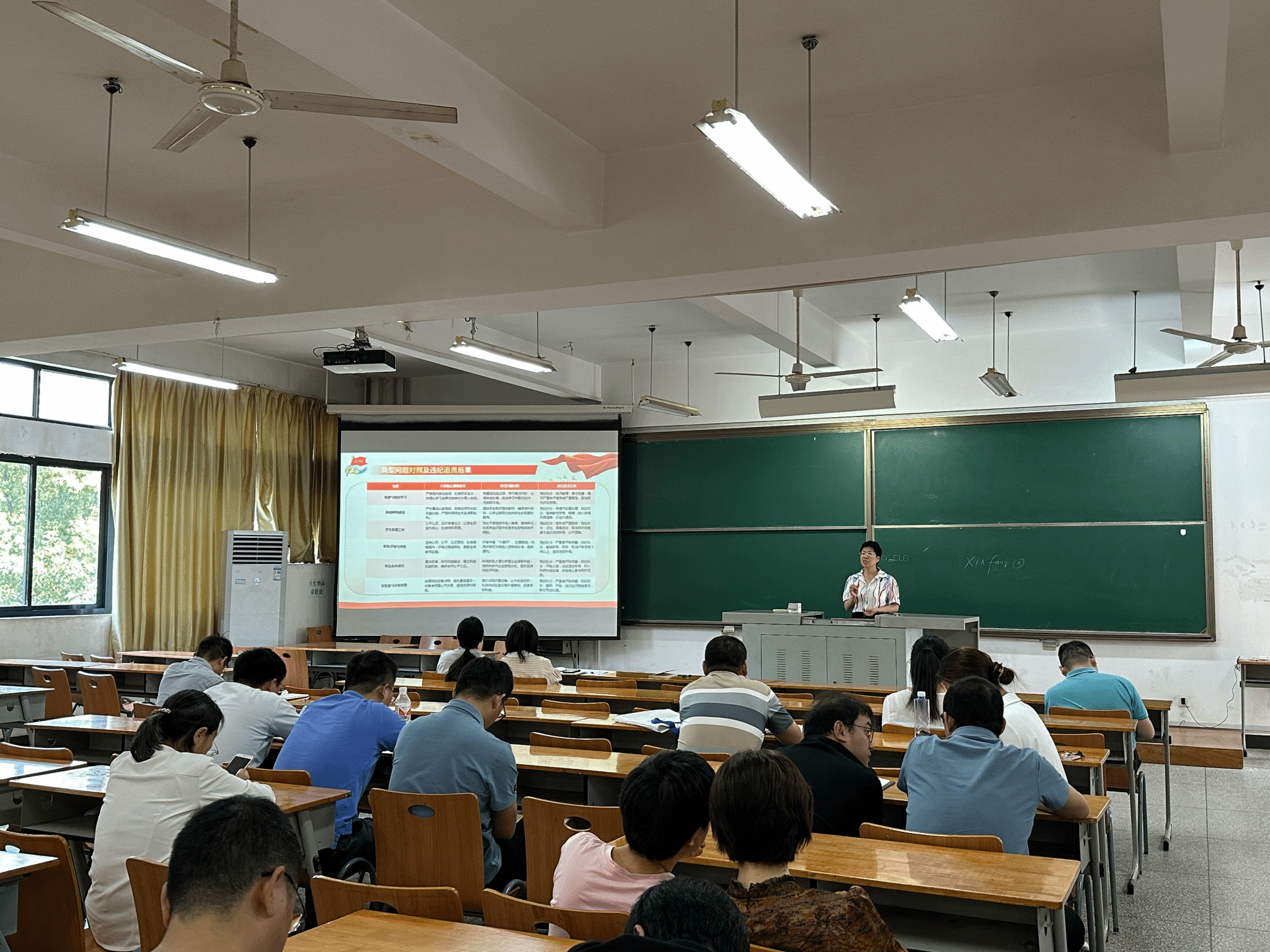 谢晓萍解读了《党政机关厉行节约反对浪费条件》文件,剖析反面典型案例,她指出,全体党员干部、教职工要筑牢拒腐防变的思想防线,强化党性修养,端正思想认识提高政治站位,严守纪律红线,坚决抵制违规吃喝行为。