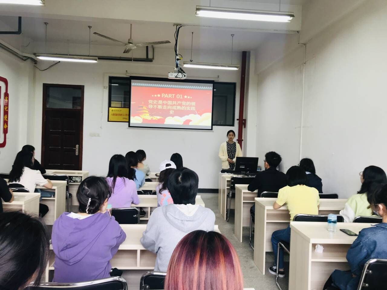 活动伊始,全体党员共唱国歌,重温入党誓词,强化了同学们的爱国爱党意识和责任意识。