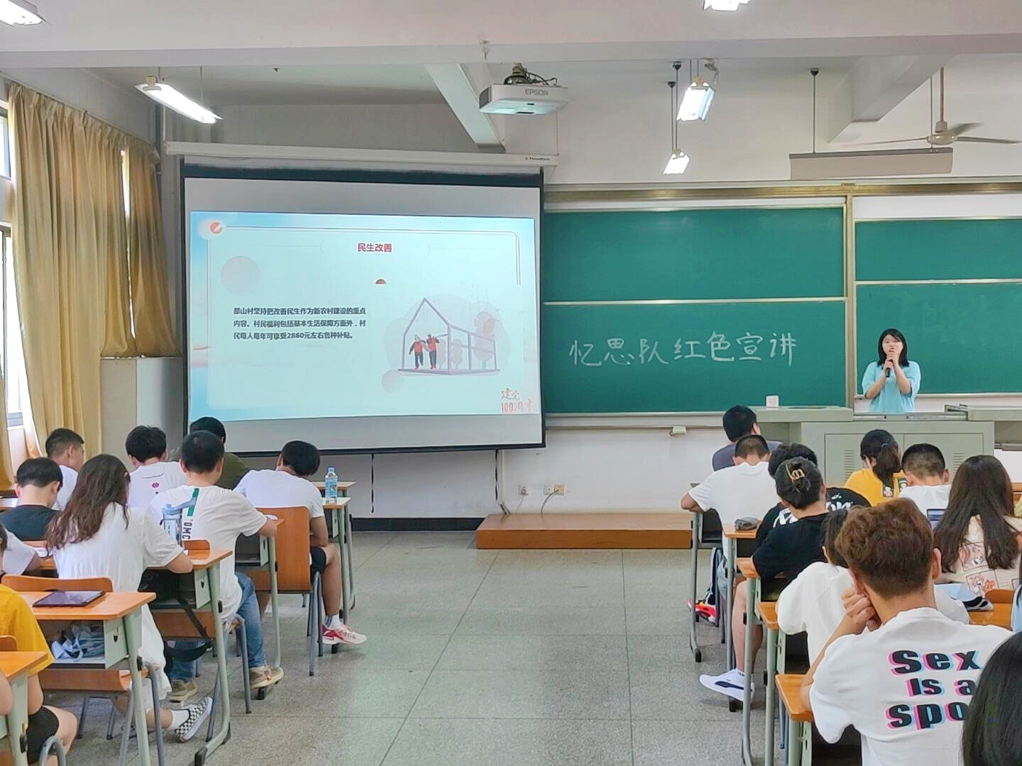 “培养青年学子革命情怀,增强历史使命感和时代责任感”,学生党员梁祺睿介绍了红色·忆思队的历年的红色实践活动。