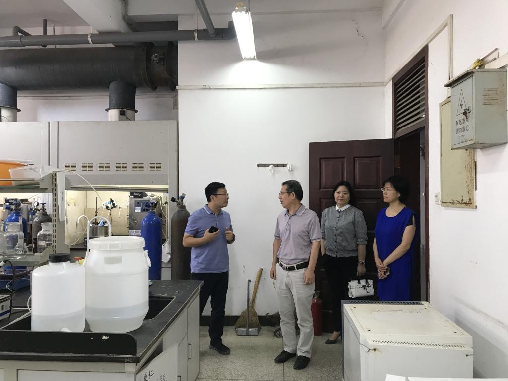 会前,唐敏一行来到学院实验室进行安全检查,尤其是实验室安全管理制度与操作规程的遵守、危险化学品和药品的管理与使用等情况逐一核查,并不时与实验室工作人员交谈。