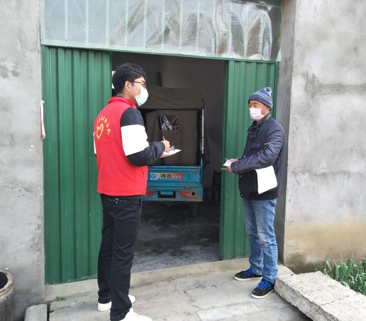 在作为志愿者的这些天,他每天早上八点在入村口卡点领取任务,服从村支书的工作部署。为了做好防疫工作每天与其他两名党员一起挨家挨户排查,走进每户人家后,对全家所有成员进行量体温、对该户进行卫生检查,最后询问是否有需要的物资——最基本的油盐米面,甚至日常的家用药(有的村民需要降血压药,有的需要排石颗粒),然后交给村委会统一购买。