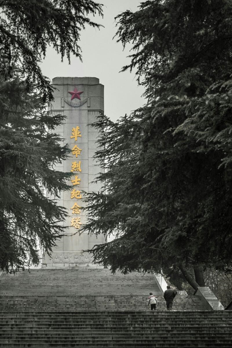 在羊祜山脚下,抬头就能望见一座高28米的革命烈士纪念碑矗立在羊祜山上,是那样庄严、肃穆!从山脚到纪念碑的一共有598阶台阶,每上一个台阶,就能感受到与那些为了解放襄阳的革命烈士的距离又近了一步。走着走着,仿佛看到了年仅34岁的革命先烈苟在合烈士在襄樊战役中,他带领该团3营攻打琵琶山,在4门火炮的掩护下,对敌发起勇猛攻击,经15分钟的激战,全歼守敌,占领阵地。敌人很快组织炮火反击,苟在合团长冲出指挥所向山上跑去,他像历次战斗一样到最前沿去指挥,身边的参谋、警卫员拦不住他。突然,敌人的炮弹在附近爆炸,他全然不顾,当进至山腰时,不幸踏响地雷。在生死攸关时刻,他把生的希望留给战友,大喊一声“闪开”并把身边的两位同志推出老远。随着一声巨响,苟在合团长光荣牺牲。