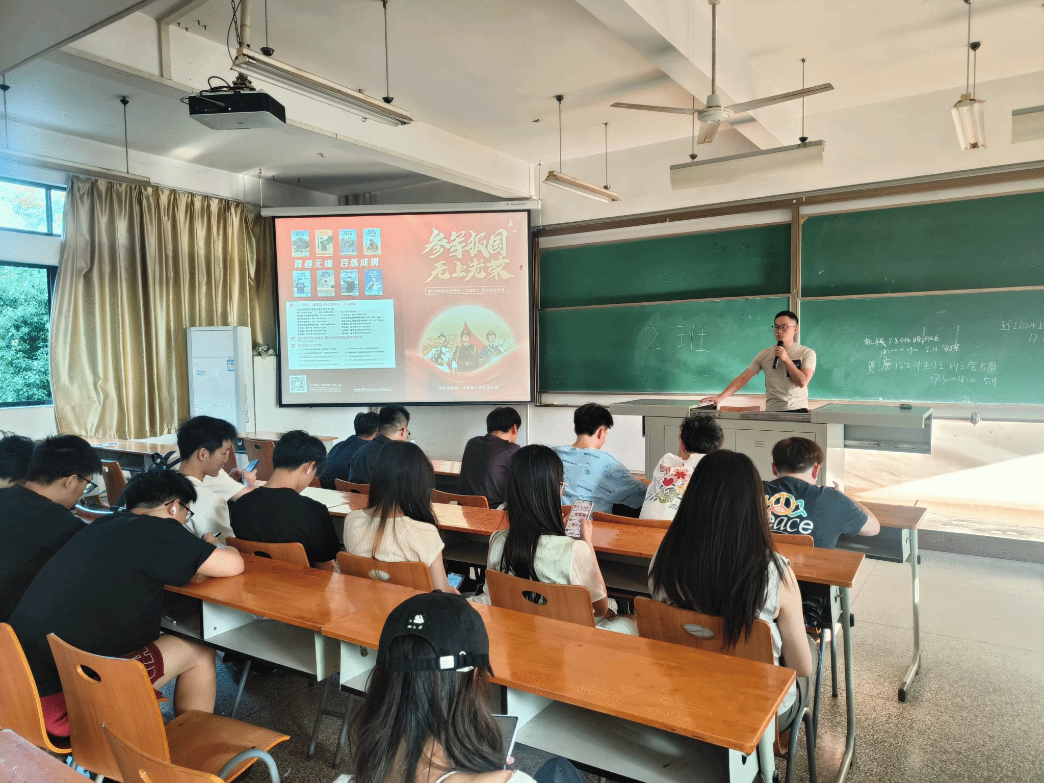 为积极响应国家征兵号召,深化大学生国防教育,5月11日晚,资环学院开展“热血青春志在军营,人生辉煌矢志报国”主题班会。活动通过政策解读、榜样分享、互动问答等形式,向全院学生尤其是应届毕业生全面宣讲征兵政策,激发青年学子投身军营、报效国家的使命感与责任感。